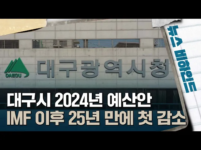 ① 대구시 2024년 예산안, IMF 이후 25년 만에 첫 감소2024년도 예산안은 세수 부족으로 전국적으로 축소하는 곳이 많습니다. 대구시도 예산이 2023년보다 줄었습니다. 대구시는 2024년도 예산안을 2023년보다 1.34%, 1,443억 원이 감소한 10조 5,865억 원으로 편성했습니다. 1998년 IMF 외환위기 이후 전년보다 예산이 줄어...