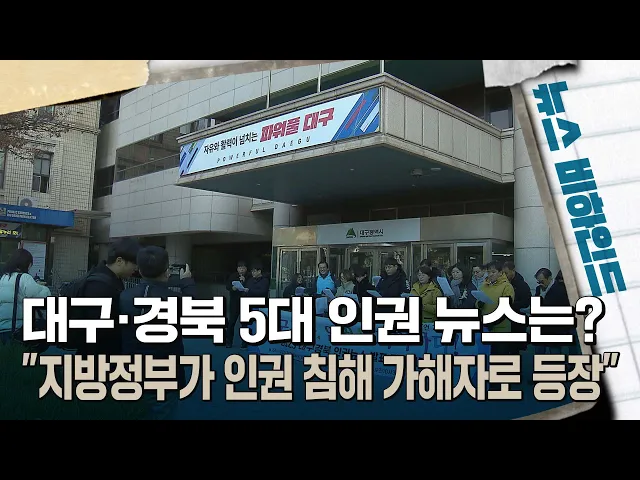 ① 대구·경북 5대 인권 뉴스 "지방정부가 인권 침해 가해자로 등장"세계인권선언일 75주년인 12월 10일을 앞두고 지역 시민단체가 '2023 대구·경북 5대 인권 뉴스'를 선정했습니다. 인권 뉴스를 선정한 주체는 대구 49개 인권시민단체로 구성한 '2023 대구·경북 인권주간위원회'입니다. 조직위는 인권 뉴스의 선정 목적이 한...