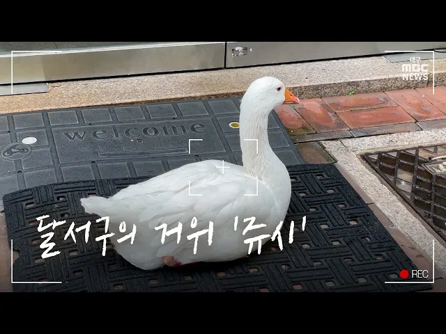 대구시 달서구에 있는 한 신협 앞에는 얼마 전부터 거위 한 마리가 하루 종일 앉아 있습니다. 사람들이 다가와도 마치 인형처럼 얌전히 앉아 있지만 가끔 신협 앞을 걷기도 하고 자신의 이름을 부르면 고개를 돌리기도 하는데요, 이 거위의 이름은 '쥬시'입니다. 신협 바로 옆에 있는 향수 가게 주인이 키우고 있는 '반려조...