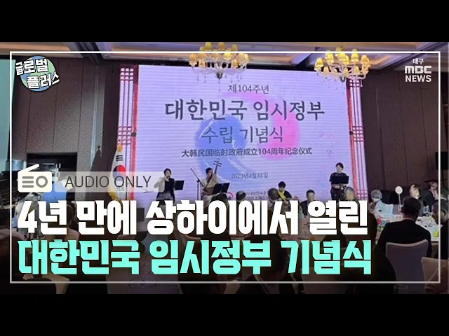 중국 상하이의 4월은 호국의 달이나 마찬가지라고 합니다. 대한민국 임시정부 104주년 기념식, 대한민국 임시정부 청사 개관 30주년 기념식에 이어 4월 28일에는 윤봉길 의사 의거 91주년 기념식이 열린다고 합니다. 상하이 현지 분위기는 어떤지, 대구MBC 시사 라디오 방송 '여론현장' 김혜숙 앵커가 장창관 대구MBC 통신...