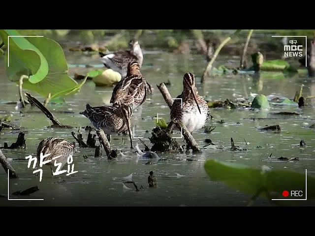깍도요는 봄철과 가을철에 우리나라를 잠시 들리는 나그네새인데요, 꼬리는 짧고 부리가 긴 것이 특징입니다. 갯벌이나 하천, 논, 연못가에서 살며 지렁이나 곤충 등을 찾아서 먹는데요, 위험을 느끼면 "꺅" 소리를 내서 꺅도요라는 이름이 붙었다고 합니다. 9월 4일 대구 달성군 옥포읍 연밭에서 꺅도요의 모습이 포착됐습...