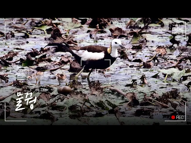물꿩은 가끔씩만 우리나라에 모습을 드러내던 나그네새였지만 2010년 이후 거의 해마다 우포늪을 찾고 있다고 합니다. 푸른 잎으로 뒤덮인 수초를 발판 삼아 걸어 다니는 물꿩은 잎이 넓은 가시연에 알을 낳고 둥지를 틀고 새끼를 키우는데요, 물꿩은 수컷이 알을 품고 새끼들이 성장할 때까지 키워낸다고 합니다. 2021년 7...