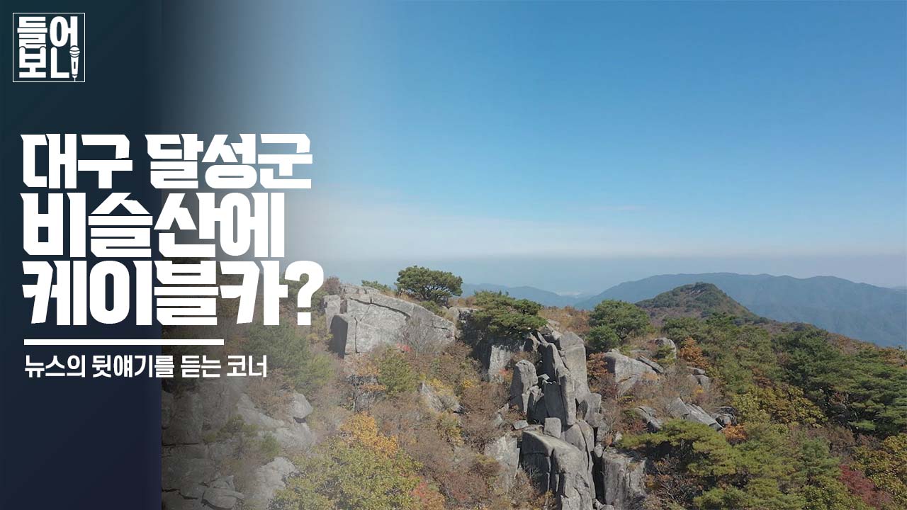 대구 달성군 비슬산에 케이블카? 대구 달성군이 비슬산에 케이블카를 설치하려고 절차를 밟기 시작한 시점은 2016년입니다. 비슬산 자연휴양림에서 대견봉까지 1,890m를 케이블카로 연결하겠다는 계획이었는데, 결국 이 계획은 무산됐습니다. 그동안 비슬산에는 어떤 일이 있었는지 양관희 기자에게 들어봤습니다.케이블카...