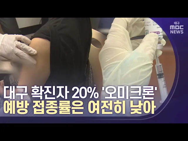 ◀앵커▶대구의 코로나 19 확진자 수가 하루 만에 다시 백 명대가 됐습니다.확진자 열 명 중 두 명은 오미크론 변이에 감염된 것으로 나타났는데요.방역 당국은 감염 예방. 나아가 감염되더라도 중증으로 악화하는 것을 막기 위해서라도 백신을 접종하기를 강력하게 권고하고 있지만 대구의 백신 접종률은 경북은 물론, 전국 ...