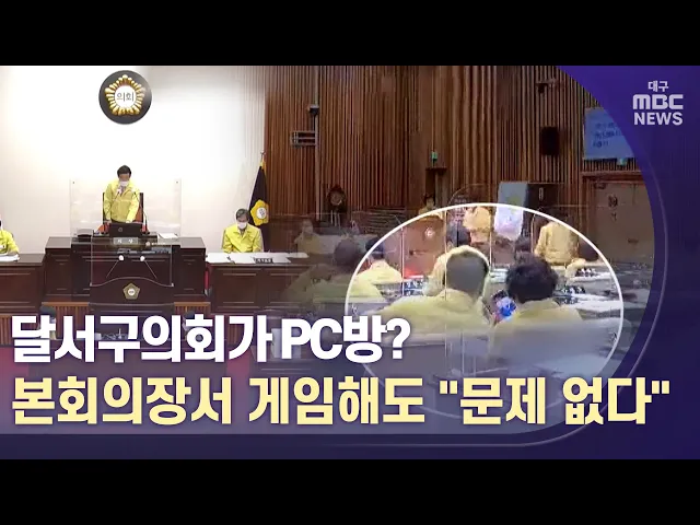 ◀앵커▶ 대구 달서구의회가 정례회가 진행되는 본회장에서 휴대전화로 게임을 하다가 적발된 구의원에게 문제가 없다고 결론 내렸습니다.반면 동료 구의원으로부터 성희롱을 당했다고 폭로한 여기자를 도우려 한 여성 의원들은 징계를 하라고 강하게 요구하고 있습니다. 달서구의회에서 벌어지고 있는 비 상식적인 일들을 윤...