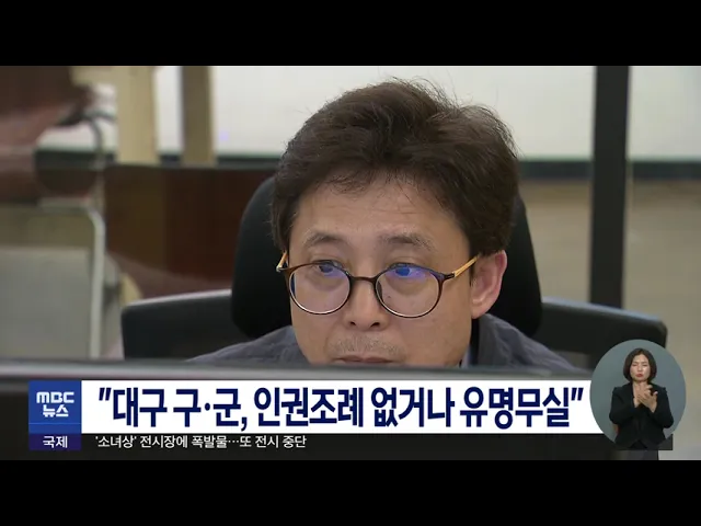 대구시와 대구의 구·군이 '인권조례'가 없거나 있더라도 제대로 지키지 않는 것으로 나타났습니다. 대구참여연대는 성명을 내고 "대구 서구와 북구, 수성구는 인권조례가 아예 없고, 인권조례가 있는 곳 중에서도 대구시와 대구 중구를 제외하면 기본계획 설정과 위원회 운영 등 규정을 지키지 않는 것으로 나타났다"고 밝...
