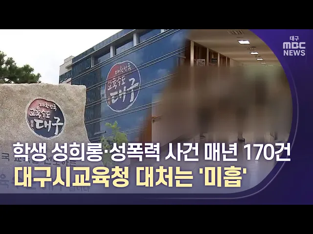 ◀앵커▶ 학생들끼리 성희롱·성폭력 사건이 대구에서만 매년 170건 이상 발생한 것으로 나타났습니다.코로나19에 따른 원격 수업으로 등교를 많이 하지 않은 지난해도 백 건 가까이 발생했는데.가해 학생에 대한 대구시 교육청의 대책은 미온적이라는 지적이 나오고 있습니다.윤영균 기자가 취재했습니다. ◀기자▶대구에서 학...