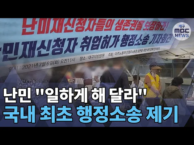 ◀앵커▶여] 종교나 정치적 이유 등으로 고국을 탈출해 다른 나라를 떠도는 이들을 난민이라고 하죠.우리나라가 이들을 난민으로 인정해 주는 경우는 손에 꼽을 정도입니다.남] 합법적으로 일을 할 수 없어 구걸하듯 살 수밖에 없다보니 "일을 할 수 있도록 해 달라"며 국가를 상대로 행정소송을 제기했습니다.양관희 기자가 ...