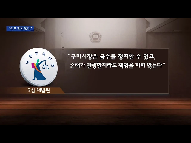 ◀ANC▶ 대규모 수질 사고나 단수 사태가 나면 책임은 누구에게 있을까요? 대법원은 행정기관에 책임이 없다는 결론을 내렸습니다. 여] 2011년 50만 명이 피해를 봤던 구미 단수 사태 관련 소송, 윤영균 기자가 취재했습니다. ◀END▶ ◀VCR▶ "수돗물 공급이 제대로 이뤄지지 않아서 주민들이 큰 불편을 겪고 있습니다"...