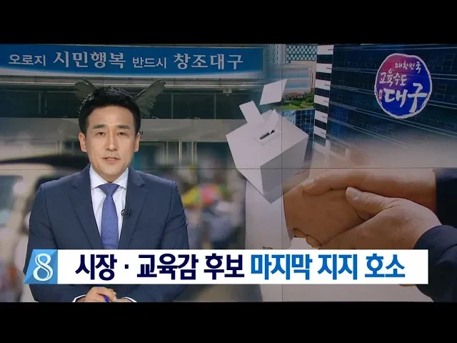 ◀ANC▶ 진인사대천명이라고 하죠, 공식선거운동 마지막 날 대구시장 후보 3명과 대구시 교육감 후보 3명은 어떤 마음일까요? 직접 들어보겠습니다. ◀END▶ ◀VCR▶ ◀INT▶임대윤 대구시장 후보/더불어민주당 "존경하는 대구시민 여러분, 오늘 여러분의 선택이 K-2를 이전하고, 대구국제공항을 국제화시킬 것이며 그...