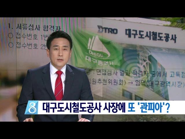 ◀ANC▶ 세월호 참사 이후 비리 근절을 위해 퇴직 공무원이 공직 당시 업무와 관련된 공공기관에 취업을 하지 못하도록 법이 강화됐습니다. 그런데, 대구시가 대구도시철도 후임 사장으로 이른바 '관피아'를 내정했고, 공모 절차까지 늦추고 있다는 의혹이 나오고 있습니다. 어찌된 일인지 윤영균 기자가 취재했습니다. ◀...