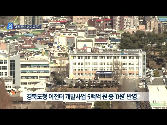 ◀ANC▶ 국감이 끝나고 예산심의에 들어가면서 예산확보전이 본격화되고 있습니다. 지역 핵심사업 예산이 정부안에서 상당히 깎인 상황인데요. 대구시는 여·야 할 것없이 지역정치권을 통해 돌파구를 마련한다는 방침입니다. 윤영균 기자가 취재했습니다. ◀END▶ ◀VCR▶ 총 사업비 2천억 원이 예상되는 경북도청 이전...