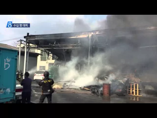 ◀ANC▶ 오늘 낮 대구 신서동에 있는 한 커피 전문점 물류창고에서 불이 나 소방서 추산 5억 원의 재산 피해가 났습니다. 다행히 인명피해는 없었지만 주변이 한시간 이상 연기로 뒤덮이면서 주민 수십명이 대피했습니다. 윤영균 기자가 취재했습니다. ◀END▶ ◀VCR▶ 수백대의 자동차가 주차된 중고차 상사 바로 옆 건...
