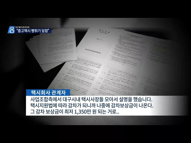 ◀ANC▶ '감차 보상금'을 많이 받기 위해 일부 택시회사에서 중고 택시 신고 가격을 뻥튀기했다는 보도 얼마전에 해 드렸는데요. 택시회사 조합 차원에서 조직적으로 뻥튀기를 했다는 의혹이 일고 있습니다. 윤영균 기자가 취재했습니다. ◀END▶ ◀VCR▶ 지난 2011년 한 택시회사가 폐업을 하면서 백여 대에 가까운 택...