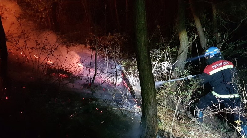 사진 제공 산림청5월 23일 오후 9시 55분쯤 경북 상주시 낙동면 구잠리에서 산불이 났습니다.불이 나자 산림 당국은 진화 차량 21대와 진화 인력 120여 명을 긴급 투입해 진화 작업을 하고 있습니다.현재 산불 현장에는 시속 0.8미터 정도의 바람이 불고 있습니다.산림 당국은 산불 현장에 드론을 투입해 산불 규모를 파악...