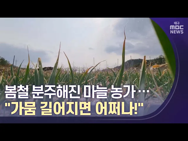 ◀앵커▶완연한 봄이 찾아오면서 경북의 마늘 농가가 분주해졌습니다.지난 겨울 강추위에도 동해도 적게 입었고 지금까지는 생육 상태도 나쁘지 않다고 합니다.하지만, 건조한 날씨가 끝도 없어 이어지고 있어 가뭄 피해 걱정이 점점 커지고 있습니다.보도에 서성원 기자입니다.◀기자▶가을에 싹을 틔워 겨울을 나는 난지형 마...