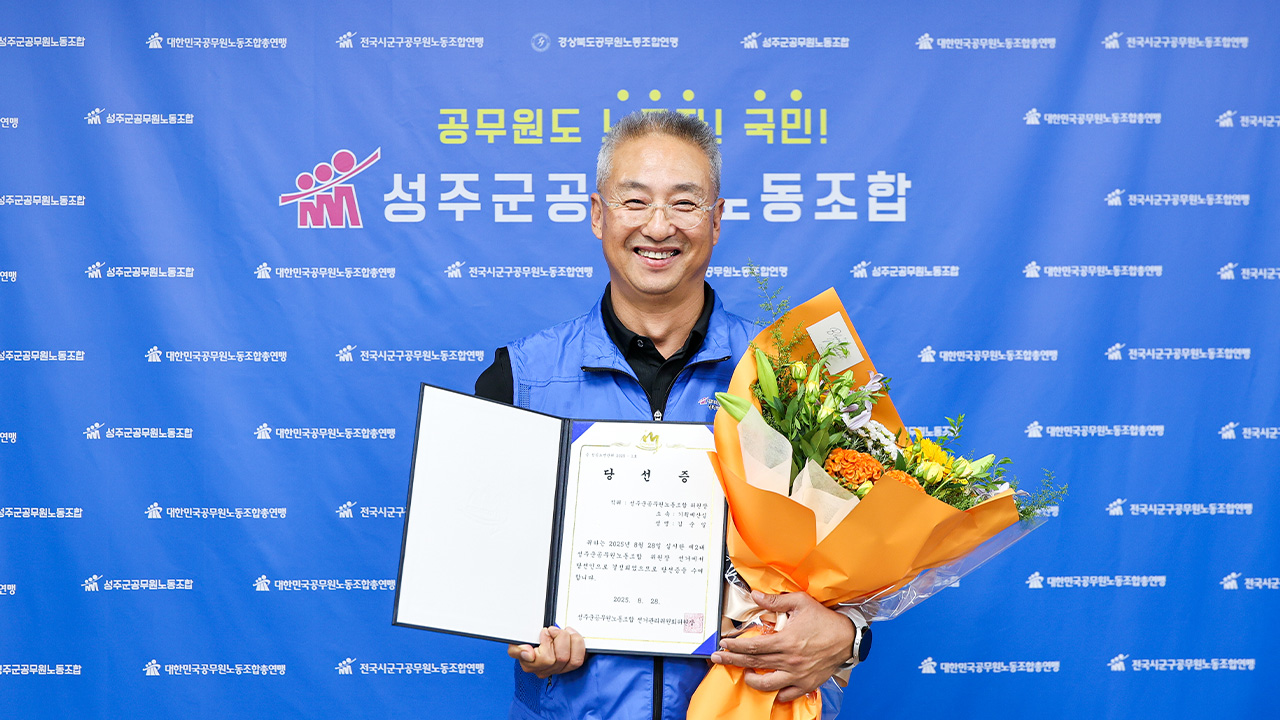 제2대 경북 성주군 공무원 노동조합 위원장에 김순일 성주군 기획예산실 홍보팀장이 당선됐습니다.이번 선거는 김 팀장이 단독 출마해 찬반 투표로 진행됐는데, 투표율 87%에 찬성 89%로 당선됐습니다. 김 당선인은 선진 인사 문화 정착과 후생 복지 개선, 직원 보호 강화와 권익 신장, 상위 단체노조와 연계 소통 강화 등...
