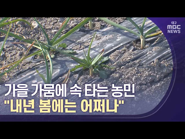 ◀앵커▶가을에 싹을 틔워 겨울을 나는 마늘 재배 농민들의 속이 타들어 가고 있습니다.겨울을 나려면 지금 이 시기에 충분한 수분 공급이 필요한데 10월부터 대구와 경북에는 비다운 비가 거의 내리지 않았기 때문입니다.취재기자와 함께 자세한 소식 알아봅니다.서성원 기자, 마늘 하면 의성과 영천이 떠오르는데 두 지역의...
