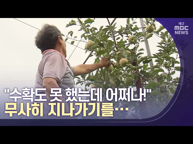 ◀앵커▶수확을 앞둔 농촌 마을도 그야말로 초비상입니다. 전국 최대의 과일 생산지인 경상북도에는 수확하지 못한 과일이 아직 많이 남아 있습니다.거센 비바람에 한 해 동안 땀 흘려 지은 농사를 한순간에 망치지는 않을까, 걱정이 커지고 있습니다.서성원 기자가 태풍 대비에 한창인 과수 농가에 다녀왔습니다. ◀기자▶경북...