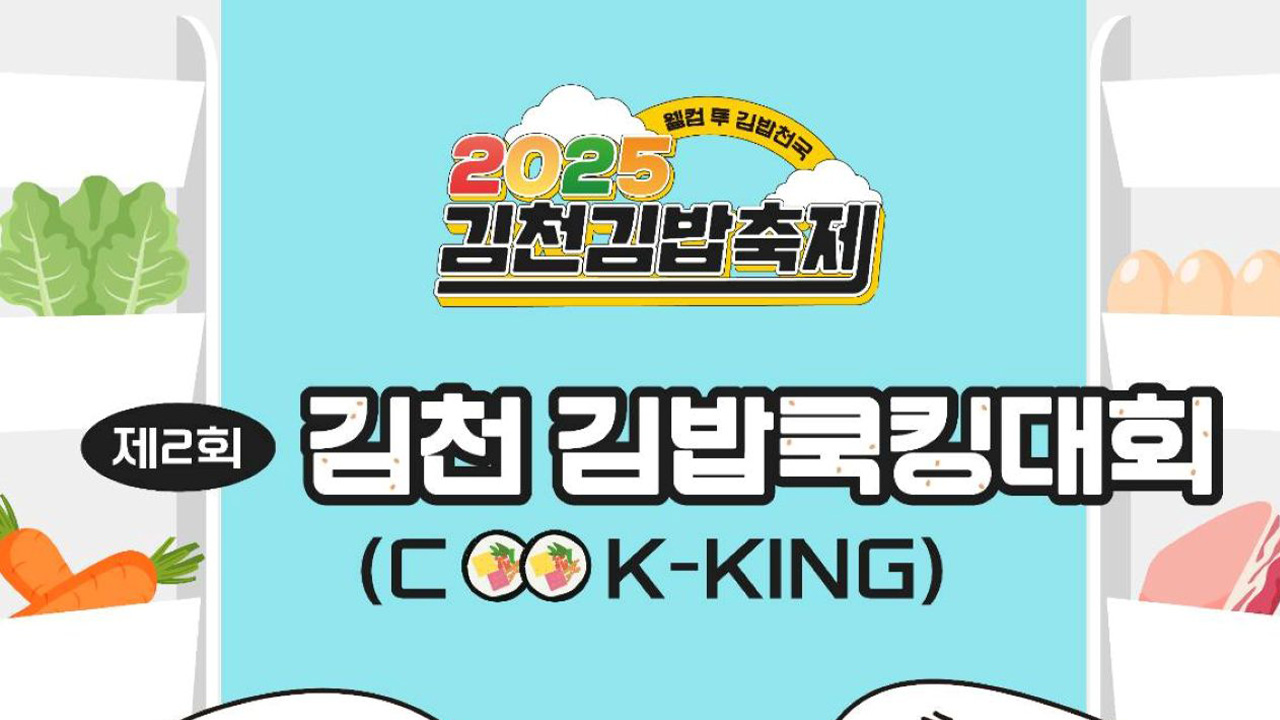 경북 김천시가 10월에 열릴 김천 김밥 축제 홍보를 위해 제2회 김천 김밥 쿡 킹 대회를 엽니다.이번 대회에는 김밥에 관심이 있는 사람은 누구나 참여할 수 있는데, 참가자 모집 기간은 7월 7일부터 8월 14일까지입니다. 전문가 서류 심사로 본선 진출 15개 팀(1팀 2명)을 선발하고, 본선에 오른 15팀에 대해서는 8월 30일 ...