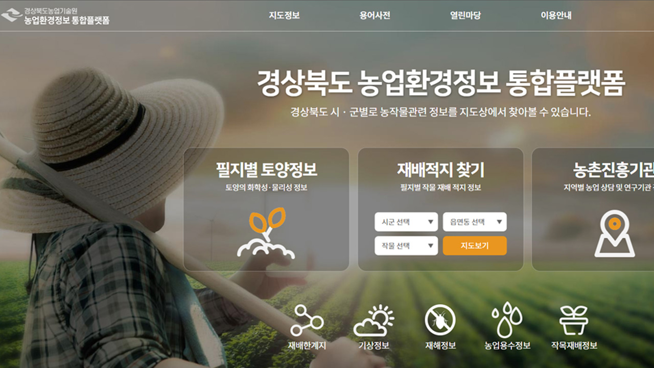 경북농업기술원이 농업 현장에서 필요한 농업환경정보를 한데 모은 통합 플랫폼(gis.gba.go.kr)을 만들었습니다.통합 플랫폼에서는 필지별 토양 검정 결과와 토양 특성 정보를 바탕으로 기상재해 발생 기록, 저수지와 지하 관정 위치, 작물 재배 적지와 기후변화에 따른 재배 한계지 등을 알아볼 수 있습니다.경북농업기술...