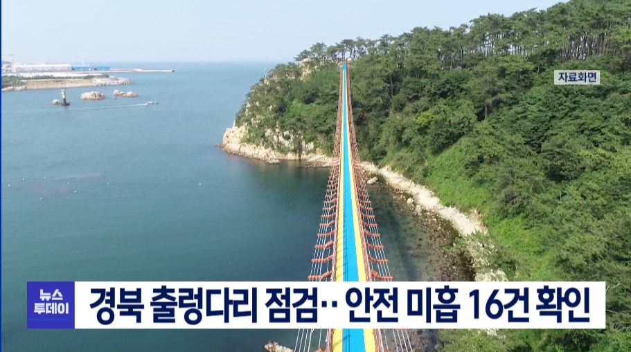 경북 일부 지역의 출렁다리에 대한 점검에서 16건의 안전 관리 미흡 사항이 발견됐습니다.경상북도는 지난 1월 24일부터 3월 8일 사이 영주와 상주, 칠곡, 울진에 있는 15개 출렁다리의 안전 관리 실태 감찰을 해서 16건의 미흡 사항을 확인했습니다.주요 지적 사항은 주탑이나 난간, 바닥 등의 유지 관리 미흡, 공공시설 ...