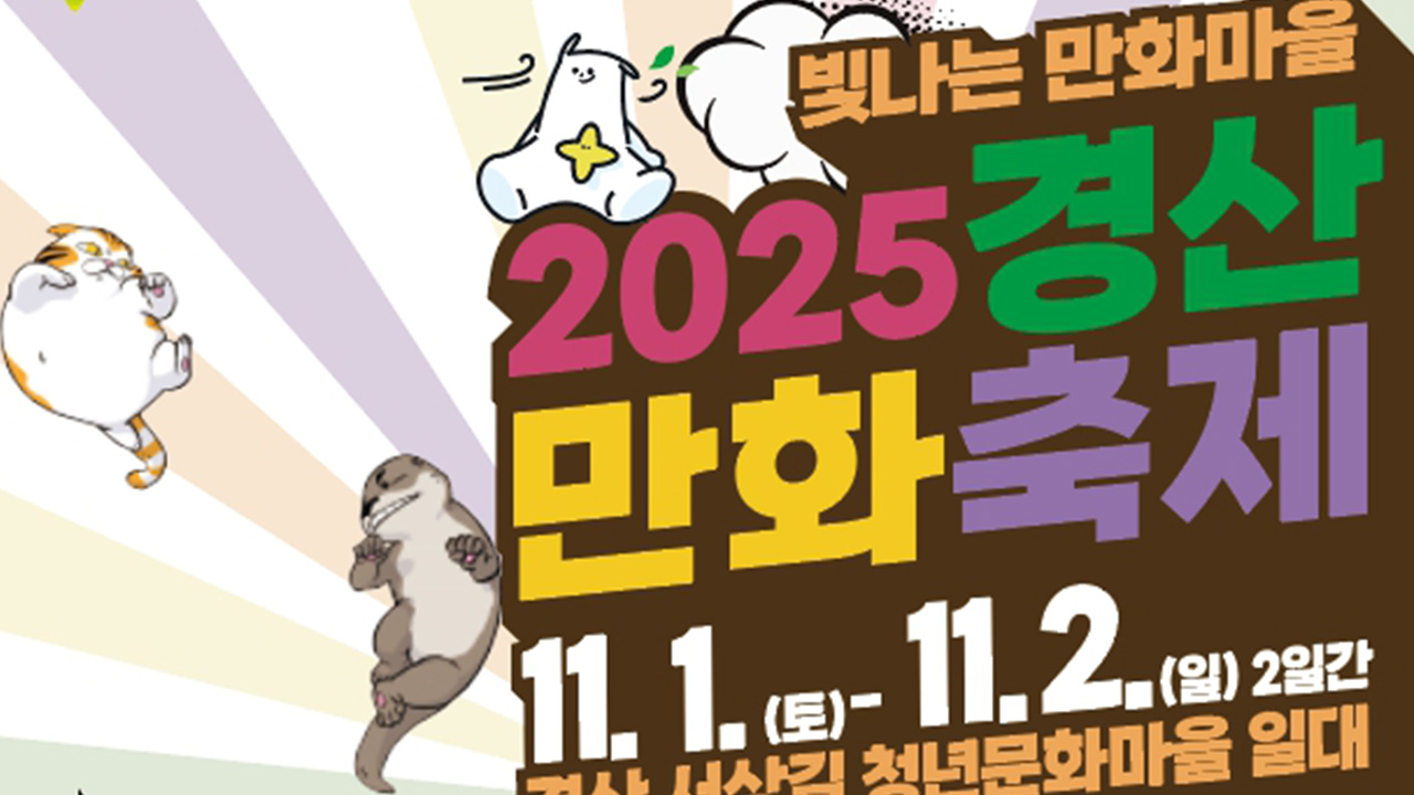 2025 경산 만화축제가 11월 1일부터 2일까지 경북 경산시 서상길 청년 문화 마을 일대에서 열립니다.경산시는 축제 무대가 될 서상길 청년 문화 마을은 골목마다 캐릭터·만화 벽화와 사진 촬영 구역 등이 조성돼 있는데, 축제 첫날인 11월 1일에는 코스튬 플레이어들이 기량을 뽐내는 코스프레 대회 예선이 진행된다고 밝혔...