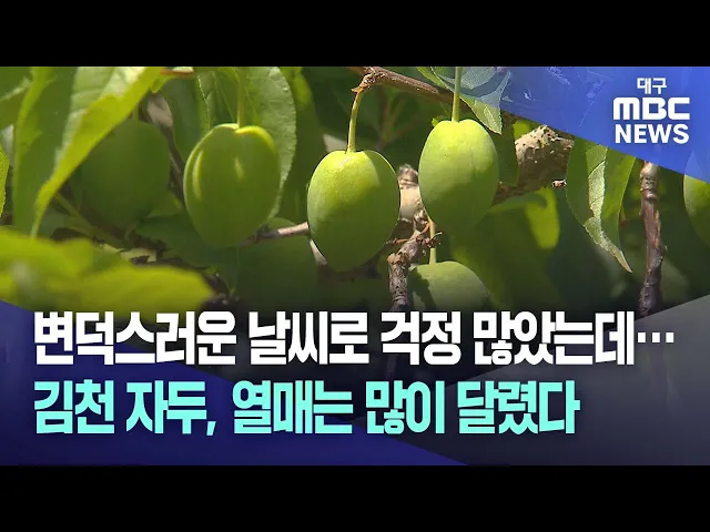 ◀앵커▶경북은 전국 최대 자두 생산지로 특히 김천은 전국에서 두 번째로 재배 면적이 넓습니다.그런데, 변덕스러운 날씨로 2023년에 이어 2024년도 피해가 반복되면 어쩌나 걱정이 큰데요.다행히 지금까지는 큰 피해가 없지만 수확이 시작될 6월까지의 예방 방제가 매우 중요하다는 지적이 나오고 있습니다.보도에 서성원 ...