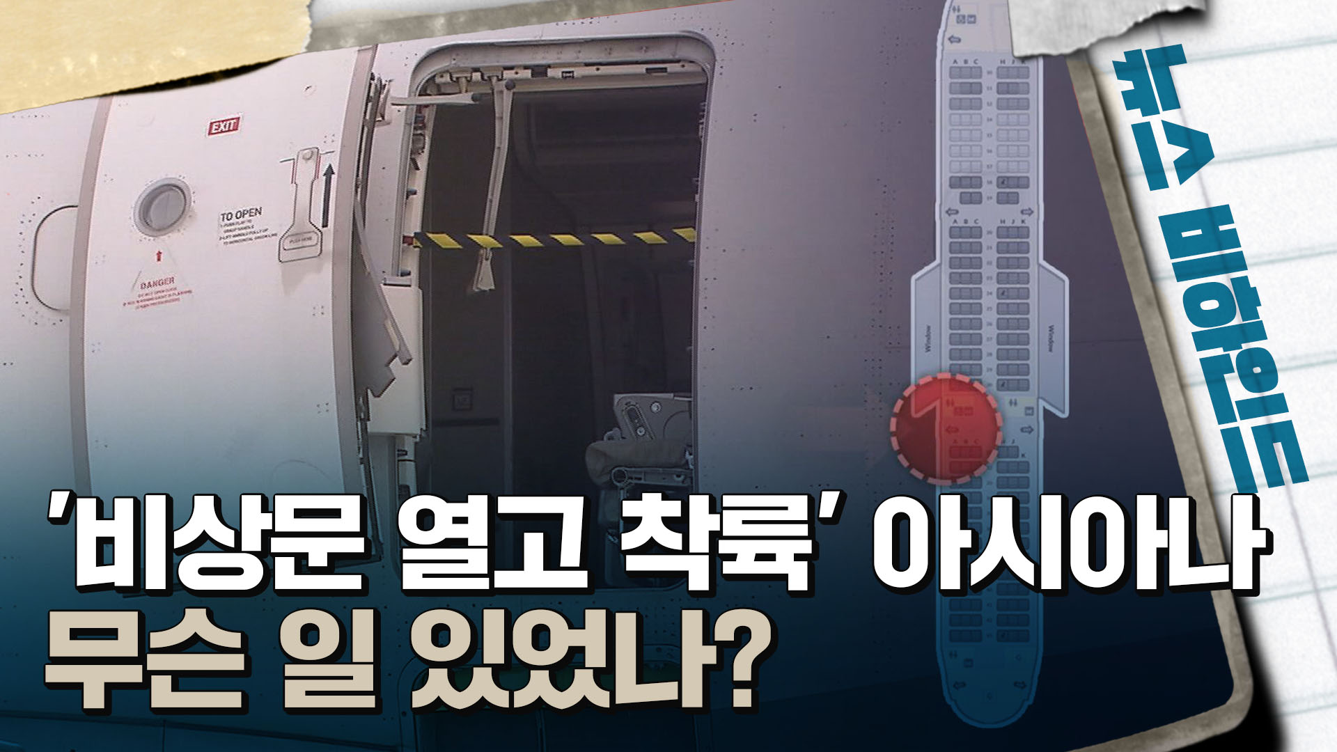 2023년 5월 26일, 아시아나항공 여객기 비상문이 착륙을 앞두고 213미터 상공에서 열렸습니다. 항공기 안으로 거센 바람이 들어온 상황에서 승객들은 비상구 반대쪽으로 몸이 기울어진 채 힘겹게 버텨야 했습니다. 자칫 대형 참사로 이어질 뻔했던 아찔한 순간에 승객들은 공포에 떨었습니다.탑승객 "뭐가 빨려 나가는 것처...