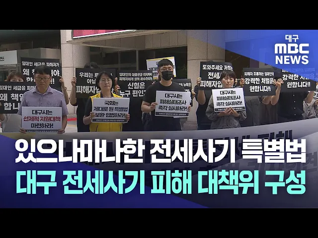 ◀앵커▶대구 집단 전세사기 속보로 시작합니다. 대구 MBC가 집중 보도한 대구 북구 뿐 아니라 전세사기가 대구 전역에서 속출하고 있습니다.하지만 최근 국회 본회의를 통과한 전세사기 특별법은 이름 뿐, 이렇다할 실효성이 없다는 지적을 받습니다. 상황이 좀처럼 해결될 기미가 없는 가운데 피해자들이 비상대책위원회를 ...