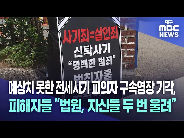 ◀앵커▶대구 북구 집단 전세 사기 속보 전해 드리겠습니다.이번 사건의 피의자는 반성이나 피해구제는 고사하고 피해자를 조롱하는 태도까지 보이며 공분을 샀습니다. 경찰이 사기 혐의로 피의자에 대한 구속영장을 신청했지만, 법원은 이를 기각했습니다. 전세 사기를 일벌백계하는 다른 법원의 판단과는 상반된다는 지적이...