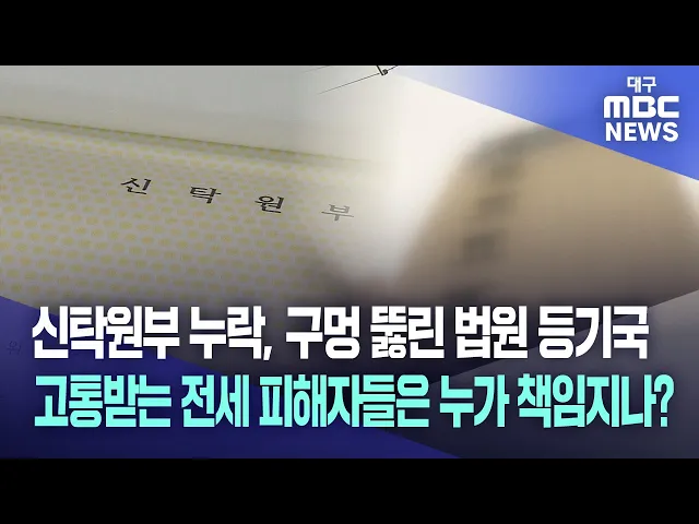 ◀앵커▶대구 북구의 집단 전세 사기 의혹 속보 전해드립니다.부동산 신탁회사가 법원에 신탁원부를 등기하면서 대출 규모를 누락한 사실이 취재 결과 드러났습니다.법원 역시 이런 사실을 확인하지 않는 등 허점을 드러냈습니다. 구멍 뚫린 신탁원부 등기도 이번 사태가 발생하는 데 한몫했다는 지적이 나옵니다.심병철 기자...
