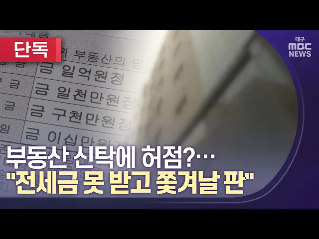 ◀앵커▶전국에서 전세 사기 피해가 이어지는 가운데 억울한 죽음이 잇따르고 있습니다. 대구에서도 17가구가 한꺼번에 전세 사기를 당했다는 제보가 MBC에 들어왔습니다.취재 결과 부동산 신탁의 허점을 노린 사건이었는데요.세입자들은 전세금을 한 푼도 돌려받지 못하고 쫓겨날 처지에 놓였습니다.심병철 기자의 단독 보도...