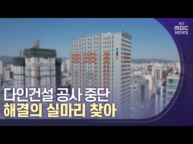 ◀앵커▶대구문화방송이 집중보도한 '다인건설 사태'가 해결의 실마리를 찾았습니다.예정된 준공일을 4년이나 넘기고도 공정률이 95%에 멈춰있었는데, 최근 공사 재개 약정을 맺고 앞으로 6개월 안에 준공까지 끝내기로 했습니다. 중도금 수천억 원을 대출했다가 떼일 위기에 놓였던 새마을금고도 한숨 돌릴 수 있게 됐습니다...