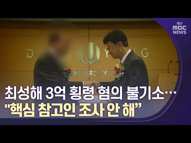 ◀앵커▶대구문화방송은 최성해 전 동양대학교 총장의 교비 수억 원 횡령 의혹에 대해 집중적으로 보도하고 있습니다.최 전 총장은 경찰이 업무상 횡령 혐의로 기소 의견으로 검찰에 송치됐지만, 대구지검 안동지청은 증거가 충분하지 않다며 불기소했습니다.고발인 측은 검찰이 핵심 참고인을 조사하지 않는 등 부실 수사를 ...