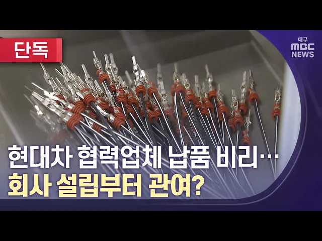 ◀앵커▶대구문화방송은 현대자동차에 미승인 부속품이 사용된 문제를 집중 보도해드리고 있습니다.운전자들의 안전과 직결될 수 있는 문제인 만큼 허투루 넘어갈 수 없기 때문입니다.현대자동차 협력업체들의 납품 비리 사슬은 회사 설립 때부터 계획적으로 이뤄진 것으로 드러나고 있습니다.심병철 기자의 단독 보도입니다....