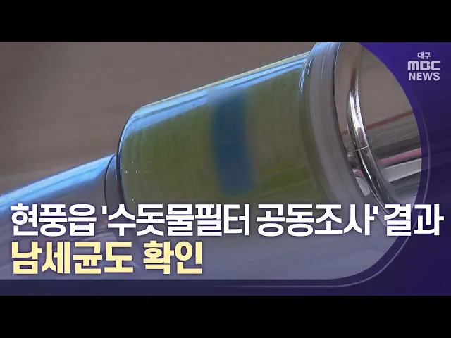 ◀앵커▶ 대구MBC에 두 번째로 제보가 들어온 대구시 달성군 현풍읍의 수돗물 필터에 낀 녹색 물질, 기억하십니까?대구시와 국립환경과학원, 대구MBC 공동 조사에서 이 녹색물질에 남세균이 포함된 것으로 최종 확인됐습니다.하지만, 남세균이 어디에서 유입되었는지는 역학조사를 하지 않아서 알 수가 없는 것으로 결론이 났...