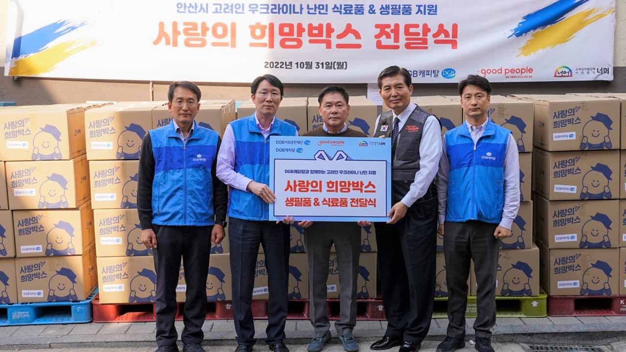 DGB캐피탈은 NGO 단체인 ‘굿피플’과 함께 전쟁을 피해 국내로 피난 온 우크라이나 고려인 난민들에게 생필품 등을 전달했습니다.DGB캐피탈은 최근 우크라이나 고려인 130가구를 지원하기 위한‘사랑의 희망 박스'를 전달했습니다.현재 국내에는 2,000여 명의 고려인 피난민이 입국한 것으로 알려졌지만 겨울을 앞두고 생필품...