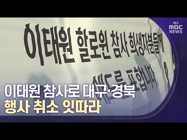 ◀앵커▶ 서울 이태원 핼러윈 참사와 관련해 대구와 경북에서도 축제 취소가 잇따르고 있습니다.지방자치단체들은 각종 행사를 특별 점검하기로 했습니다,보도에 심병철 기자입니다. ◀기자▶'2022 대구 할로윈 축제'가 열릴 예정이었던 행사장입니다.행사 진행 요원들이 천막과 의자를 철거하고 있습니다.서울 이태원 핼러윈 ...