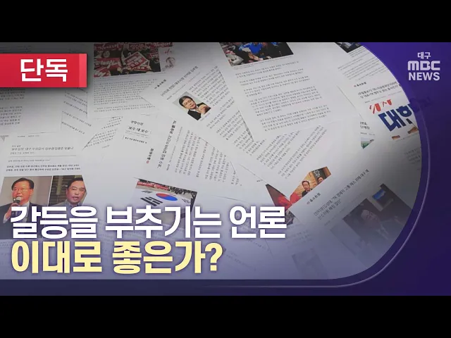 ◀앵커▶대구문화방송의 창사 59주년 특별기획 뉴스 '사분오열 대한민국, 진영 논리를 넘어 미래로' 시간입니다.우리 사회의 주요 갈등을 해결하기는커녕 오히려 악용해서 갈등을 부추기거나 이익을 챙기는 쪽도 있습니다.언론도 그 세력의 하나로 꼽히고 있는데요. 이번 순서는 부끄러운 언론의 자화상을 전해드립니다.심병...