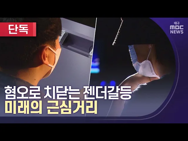 ◀앵커▶대구문화방송이 창사 59주년을 맞아 마련한 특별 기획 뉴스. '사분오열 대한민국, 진영 논리를 넘어 미래로' 순서입니다.세 번째 시간으로, 최근 몇 년 사이 우리 사회의 가장 뜨거운 이슈중 하나로 떠오른 '젠더 갈등'을 조명해보겠습니다.특히 젊은 세대에서 젠더 갈등이 더욱 심해 우리 사회의 미래를 어둡게 하는...