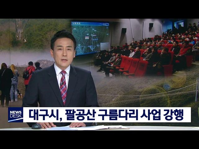 ◀ANC▶ 대구시가 환경단체들의 반대에도 불구하고 팔공산에 구름다리 건설을 위해 절차를 밟고 있습니다. 오늘 주민설명회를 열고 지금까지 추진했던 내용과 앞으로 계획을 설명했습니다. 보도에 심병철 기잡니다 ◀END▶ ◀VCR▶ 팔공산 구름다리 설치 사업 주민설명회가 열린 강당에는 동화지구 상인과 주민들로 가득...