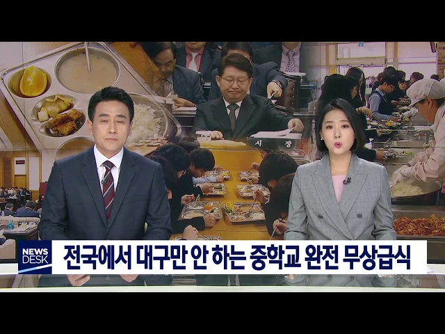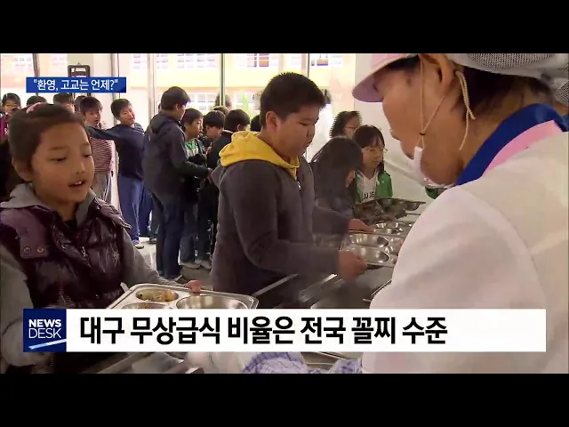 ◀ANC▶ 남] 요즘 시중에 "대구 시장님 요즘 밥이 넘어 갑니까"라는 말이 유행입니다. 유독 대구의 학생과 학부모가 푸대접 받는 무상급식 문제 때문입니다. 여] 이젠 대구시교육청마저 중학교까지 전면 도입을 할 수 있다고 하는데, 유독 대구시만 못 하겠다며 반대하고 있습니다. 예산 우선순위를 따지자면 무상급식보다...