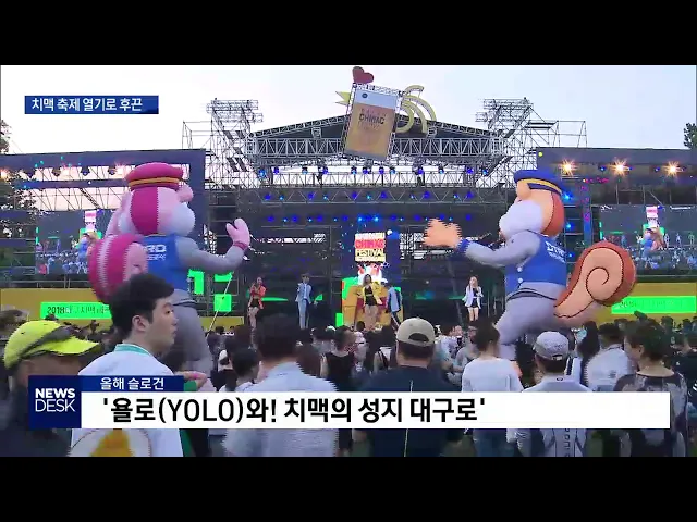 ◀ANC▶ 치맥의 성지로 불리는 대구의 대표적인 축제인 2018 대구치맥페스티벌이 오늘 개막했습니다. 대구치맥페스티벌 개막행사가 열리고 있는 현장에 취재기자가 나가 있는데요. 직접 연결해 자세한 소식 알아보겠습니다. 심병철 기자, 그곳 분위기는 어떻습니까? ◀END▶ ◀VCR▶ 저는 지금 뜨거운 여름 밤을 더욱 후...