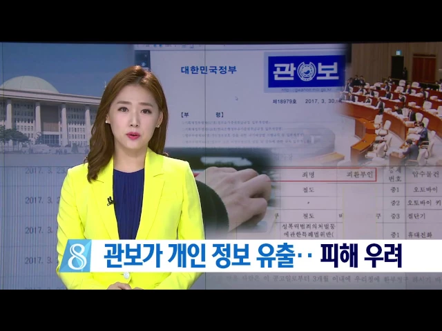 ◀ANC▶ 인터넷 시대에 개인정보유출 문제는 심각한 사회문제가 되고 있는데요. 정부의 정보를 국민에게 알려주기 위한 관보에 개인 신상정보가 상세히 노출돼 제 2의 피해가 우려되고 있습니다. 심병철 기자가 취재했습니다. ◀VCR▶ ◀END▶ 간통죄로 처벌 받았던 사람들이 재심을 통해 무죄가 확정돼 형사보상금을 받...
