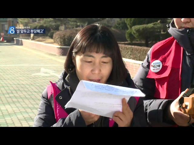 ◀ANC▶ 설 연휴를 앞두고 모두들 들뜬 이 때에 납득할 수 없는 부당해고 통지를 받은 이들이 있습니다. 대구의 한 초등학교 배식원으로 일하는 비정규직 노동자들의 이야기입니다. 이 자리에 취재기자가 나와 있습니다. 조재한 기자, 어떤 사연인가요? (기자) 네,대구 칠성초등학교에서 5년 이상 배식원으로 일해왔던 안...