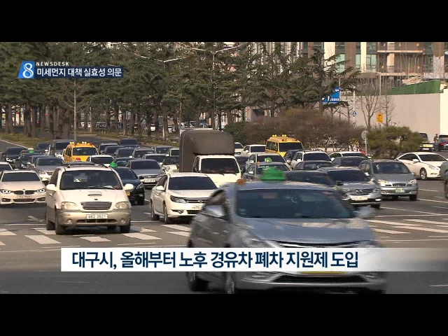 ◀ANC▶ 호흡기와 심혈관 질환 등 각종 질병의 원인이 될 수 있는 미세먼지를 이른바 '소리 없는 살인자'라고 부릅니다. 대구시가 올해부터 미세먼지를 줄이기 위해 오래된 경유차의 폐차 지원제도를 도입할 예정인데요, 그 실효성에 의문이 제기되고 있습니다. 보도에 심병철 기잡니다. ◀VCR▶ ◀END▶ 지난 2일과 3일...