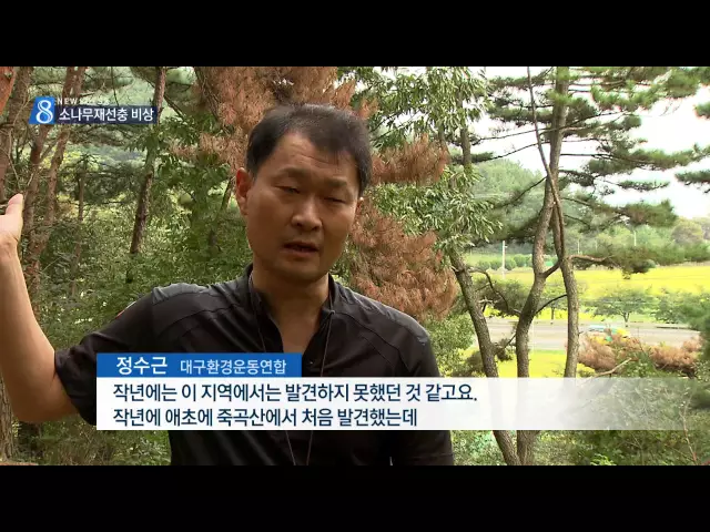 ◀ANC▶ 한번 감염되면 속수무책인 소나무 재선충이 대구에서 계속 확산되고 있습니다. 대구에서는 2005년 처음 확인된 뒤 갈수록 확산속도가 빨라져 방제에 비상이 걸렸습니다. 보도에 심병철 기잡니다. ◀END▶ ◀VCR▶ 대구시 달성군 다사읍의 한 야산입니다. 말라죽은 아름드리 소나무들이 곳곳에 보입니다. 소나무...