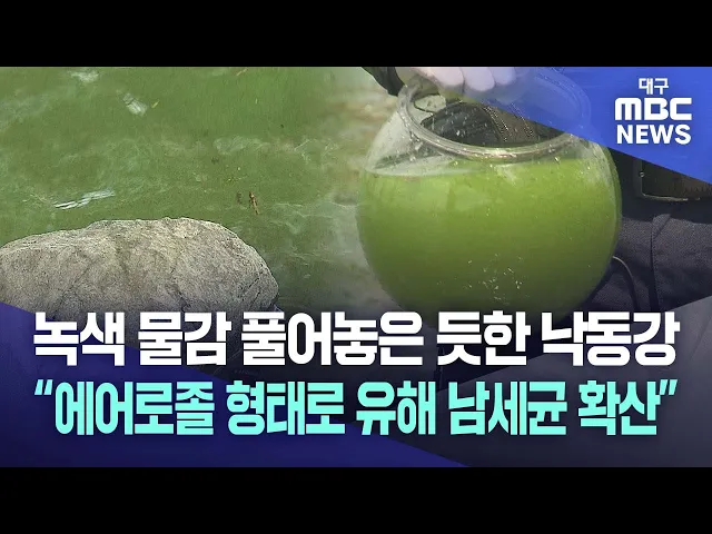 ◀앵커▶최근 낙동강의 녹조가 창궐하면서 유해 남세균이 뿜어내는 독소인 마이크로시스틴에 식수원이 노출될 위험이 높다는 우려가 나옵니다.뿐만 아니라 마이크로시스틴이 에어로졸 형태로 떠다니면서 주민들의 건강을 위협할 수 있다는 경고까지 나오고 있습니다.환경단체들은 환경 당국에 특단의 대책을 수립할 것을 촉구...