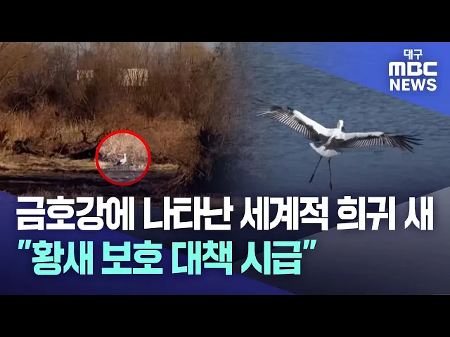 ◀앵커▶세계적인 희귀종이자 멸종 위기 동물이죠, 황새가 대구 금호강에서 목격됐습니다.우리나라에서 서산 간척지와 해남 간척지, 낙동강 하구, 우포늪, 제주도 등지에서 간혹 목격됐지만 대구·경북에서는 이번이 처음입니다.환경단체들은 황새가 머물 수 있도록 서식지 파괴를 막고 보호 대책을 세울 것을 촉구하고 나섰습...